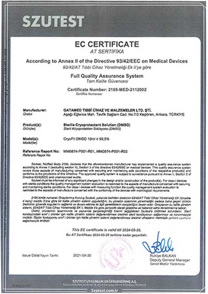CHEMICAL ANALYSIS TEST REPORT OF CRYOFIT DMSO (99,95%)